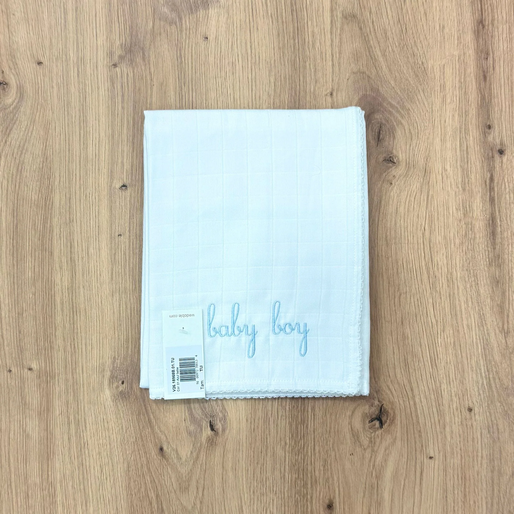 mussolain cotone organico con scritta ricamata