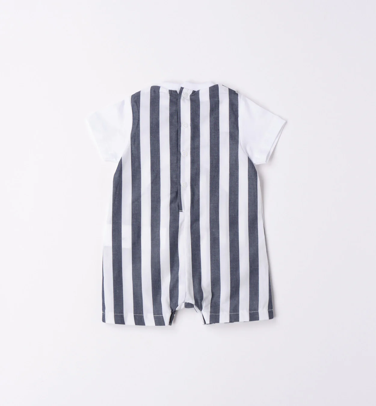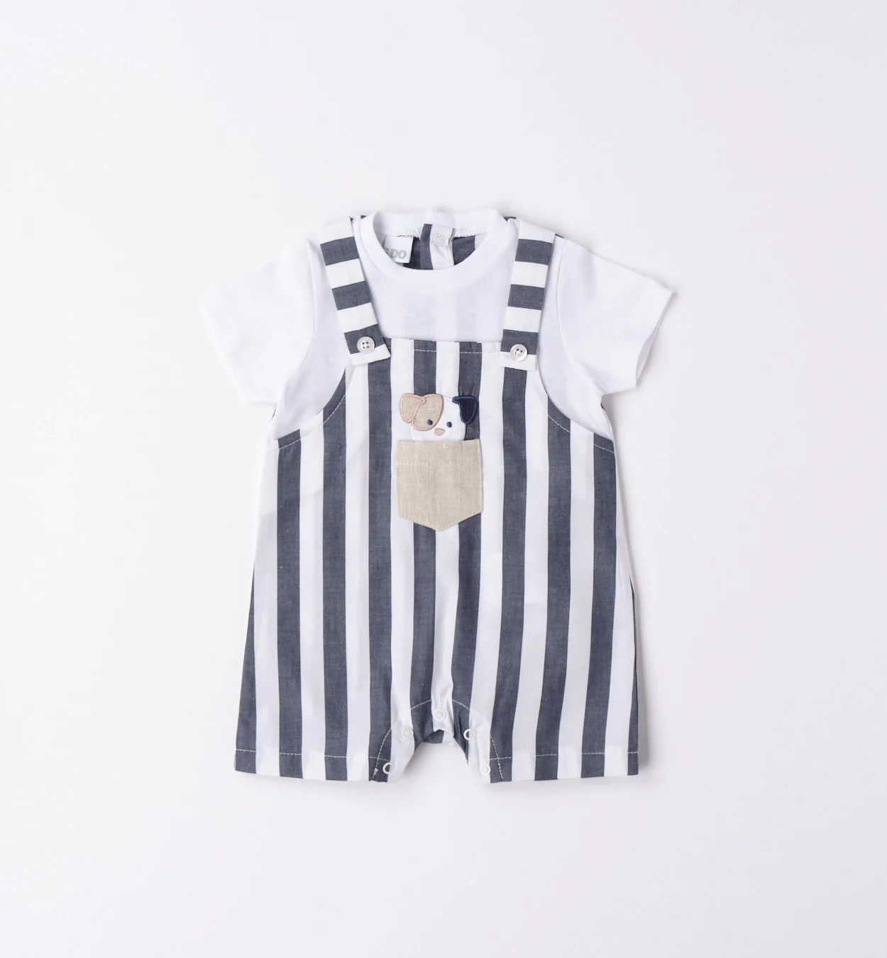 pagliaccetto con effetto salopette rigata.